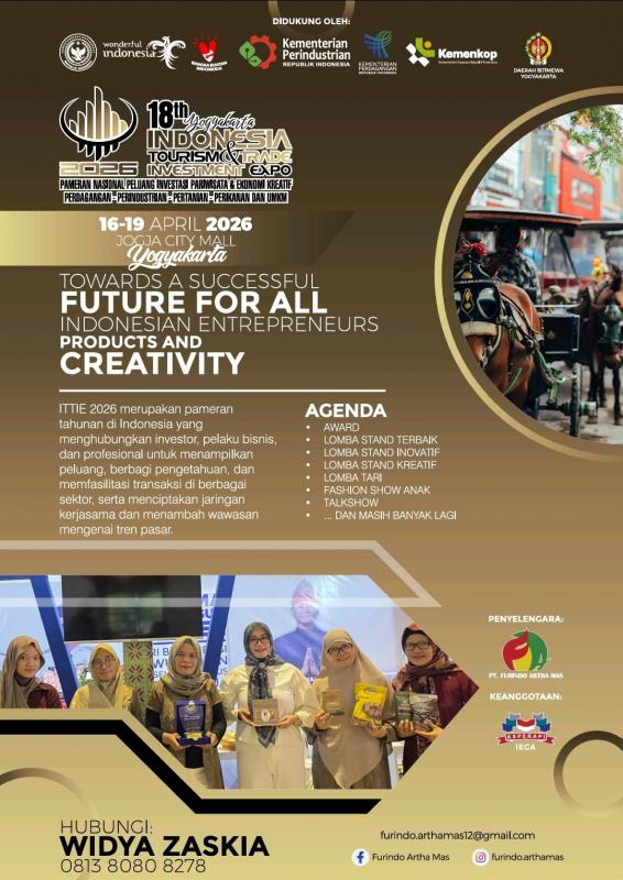 Bendung (SID) Desa Wisata "Among Kisma Kaluarahan Bendung Indonesia mewakili Dinas Pariwisata DIY Dalam Ajang  Tourism, Trade & Investment Expo (ITTIE) yang dilaksanakan di Jogja City Mall  Yogyakarta , dengan tema (tajuk )"Towards a succesfull future for all Indonesian Entrepeneurs Producst & Creativity , Ajang ITTIE ini dilaksanakan dari tanggal 16-19 April 2026 , Adapun tujuan pameran ini adalah apameran nasional di Indonesia yang menggabungkan tiga sektor utama: pariwisata, perdagangan, dan investasi dalam satu event terpadu. Event / Pameran ini bertujuan untuk mempromosikan potensi lokal,